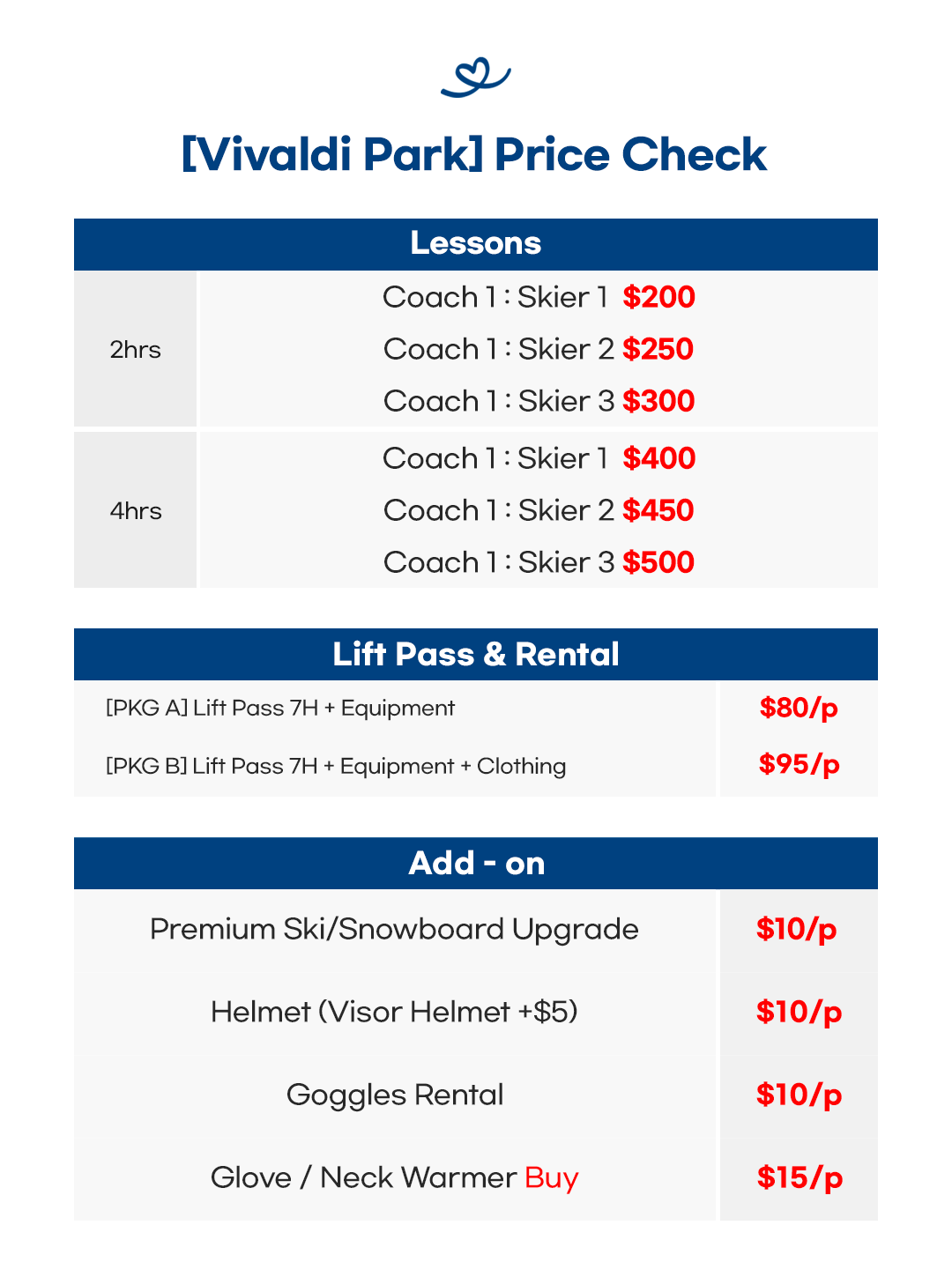 Ski/Snowboard Private Lesson Package | One Day Tour | 00 | USD 280 |